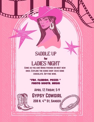 Join us for an unforgettable evening celebrating women and community at our Ladies Night Out! Enjoy a night filled with fun, friendship, and local flair as downtown Sanger’s businesses roll out the red carpet just for you!